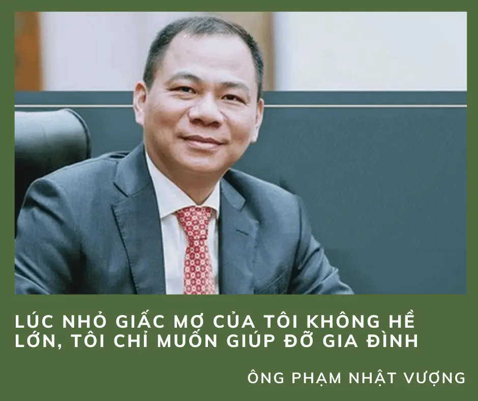 Ông Phạm Nhật Vượng sinh ra trong gia đình không được khá giả bởi nguồn thu nhập chính của gia đình chỉ phụ thuộc vào quán trà đá nhỏ của mẹ. Ông chỉ có khao khát nhỏ bé là giúp đỡ được gia đình mình, ông Phạm Nhật Vượng đã từng bước một thực hiện được từng mục tiêu nhỏ rồi hướng đến những mục tiêu lớn hơn mà không phải ai cũng thực hiện được.